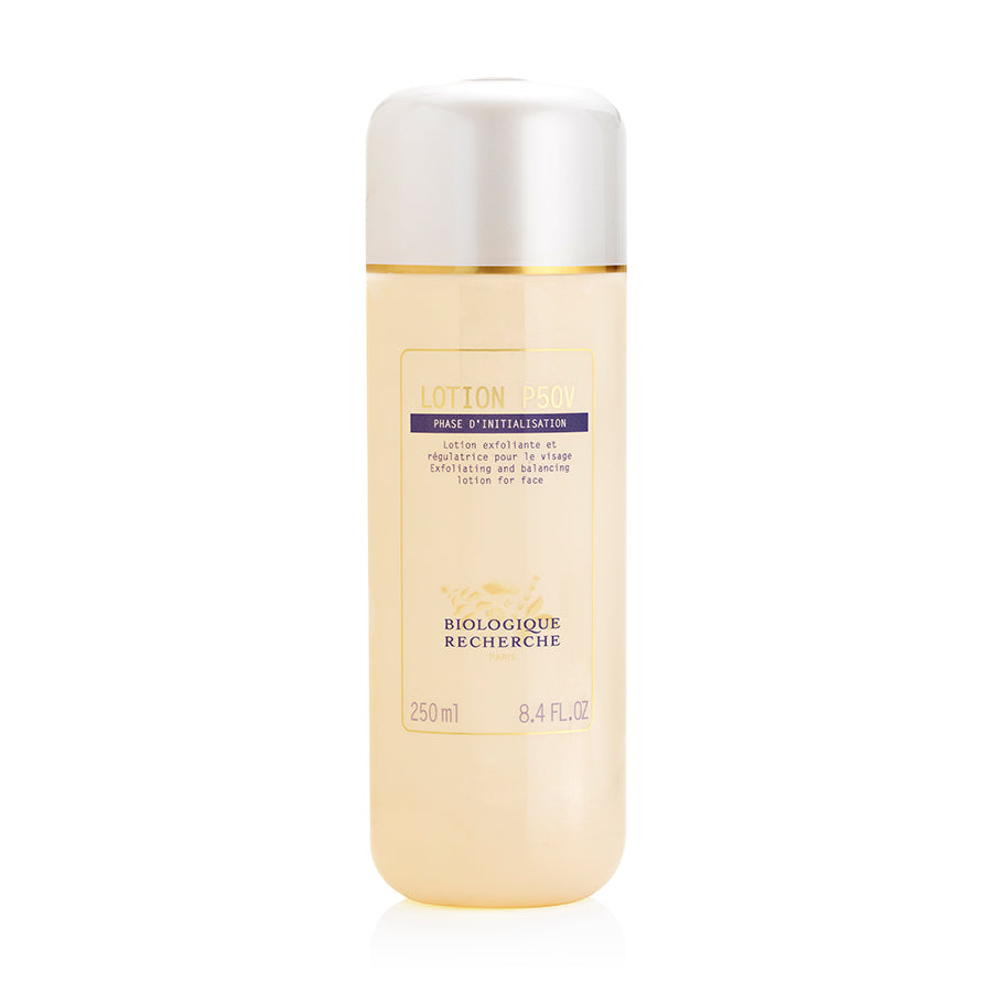 Biologique Recherche P50 V is a vitamin infused acid face toner ideal for normal to dry skin. Lotion P50V gently exfoliates the skin, purifies pores, regulates oil production and re-balances the pH of the skin. This gentle blend of acids helps to shrink enlarged pores, and its Onion extract hydrates and moisturizes the upper layers of the epidermis. P50V removes and dissolves dead skin cells and impurities on daily basis.