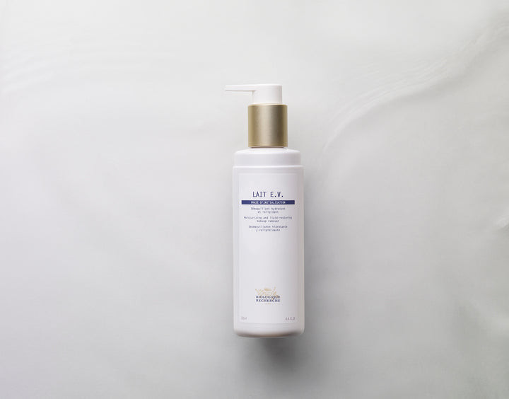 Biologique Recherche Lait E.V milky cleanser gently removes makeup and impurities. Prevents dehydration, comforts, soothes and softens stressed and devitalized skins, leaving your skin velvety soft. Recommended for dehydrated and sensitive skin.