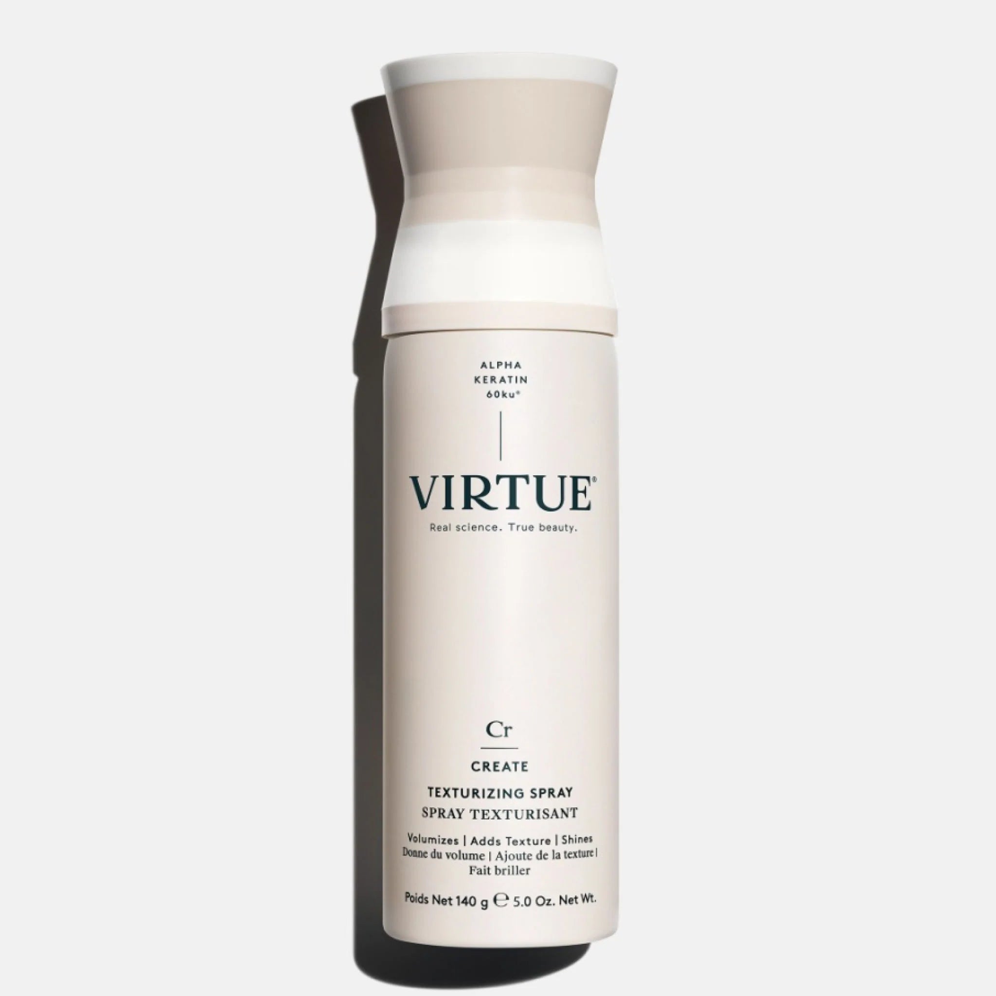 Virtue Labs Texturizing Spray is an ultra-lightweight hairspray that gives light, flexible hold while blocking humidity and frizz. The fine mist provides a clean, non-sticky application, adding shine to any hair type. It's infused with our patented Alpha Keratin 60ku® which binds to damaged ends, filling and smoothing where needed most, giving hair a healthy, vibrant shine. Color-safe, paraben-free, gluten-free.
