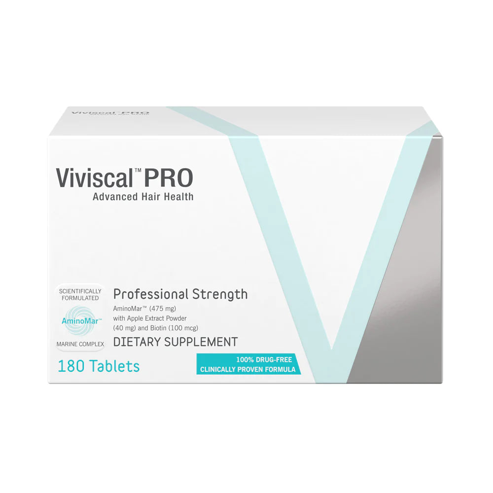 Viviscal Professional Supplements promote healthy hair growth for men and women of all hair types. Viviscal Professional Supplements are a drug-free alternative to prescription treatments that help encourage healthy hair growth for men and women of all hair types. Formulated with the clinically proven marine complex, AminoMar, these twice-a-day tablets nourish thinning hair, strengthening locks from the inside out. Apple extract helps increase hair density, while biotin promotes existing hair growth. Vitamin C provides antioxidant protection against damaging free radicals. Viviscal works in stages: Stage 1: Hair follicles are nourished Stage 2: Thin, wispy hair is strengthened Stage 3: Breakage and thinning declines; existing growth is encouraged Stage 4: Hair becomes stronger, healthier and more vibrant Depending on hair growth cycle, you can experience visible results in as little as three months. Address thinning hair and temporary hair loss with Viviscal Professional Supplements. Viviscal Professional Supplements contain even more of the proprietary marine complex AminoMar than any other formula, plus they include apple extract, L-Cysteine and L-Methionine, ingredients that are not found in any other Viviscal product. Professional Supplements are sold exclusively through physicians' offices, clinics and physician-owned and operated websites such as LovelySkin, and they are backed by 20 years of clinical research. NOTE: Please be advised that you may experience variations in the color of Viviscal tablets. This is due to normal variations in marine algae color in the AminoMar marine complex, a key ingredient in Viviscal supplements.